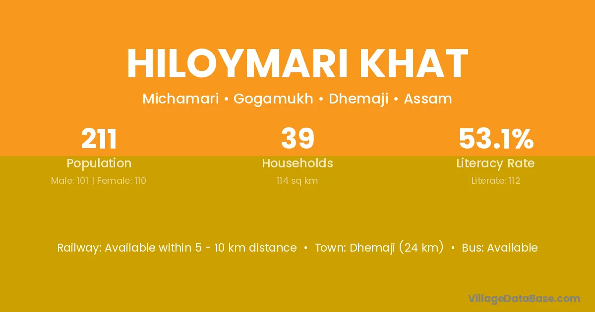 Hiloymari Khat village has a total population of 211 people, of which 101 are males and 110 are females.