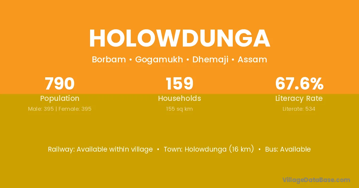 Holowdunga village has a total population of 790 people, of which 395 are males and 395 are females.
