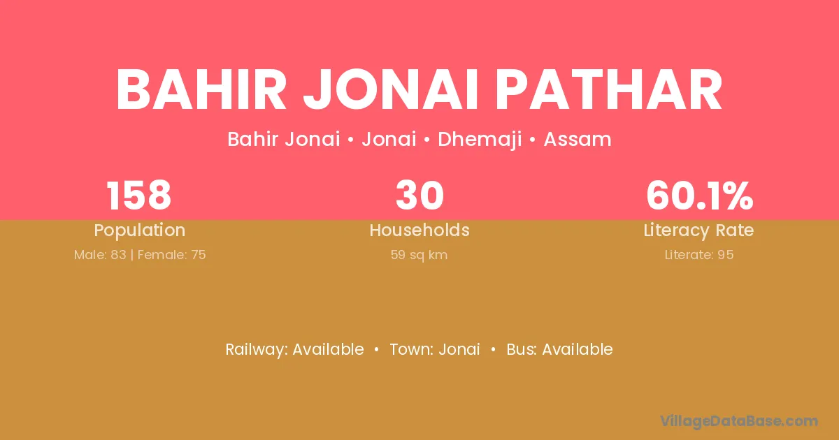 Bahir Jonai Pathar village has a total population of 158 people, of which 83 are males and 75 are females.