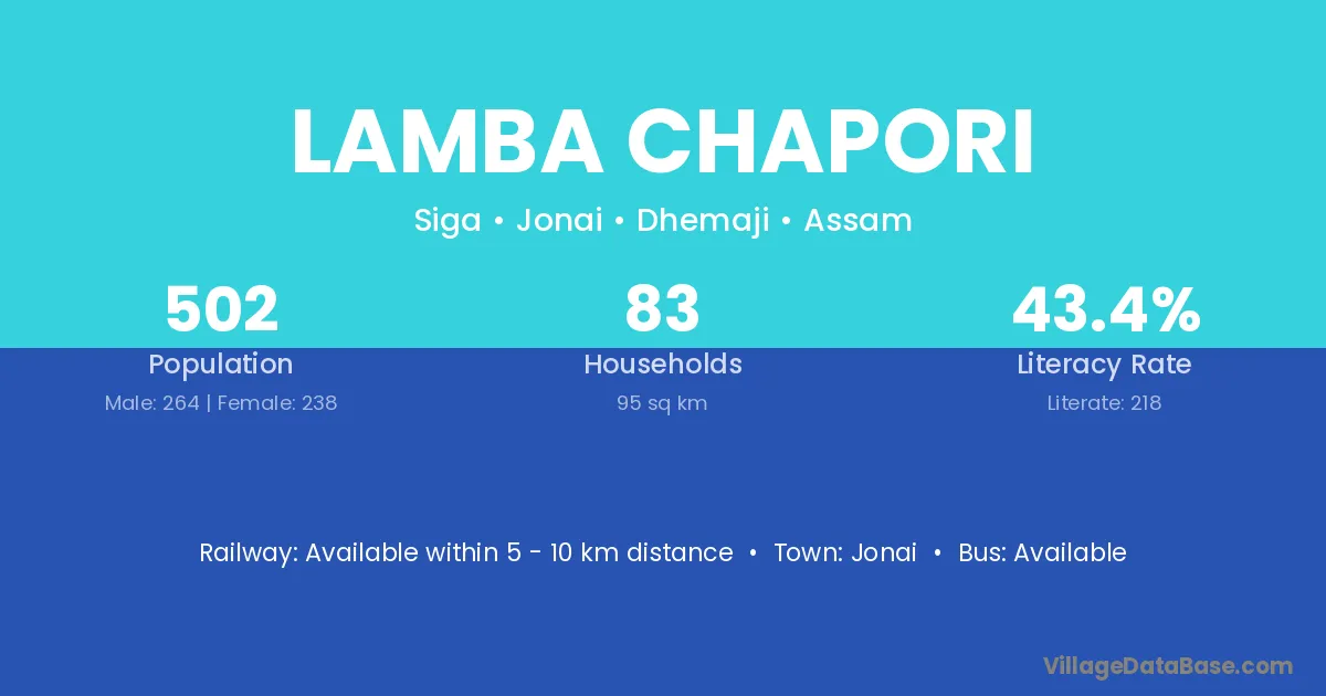 Lamba Chapori village has a total population of 502 people, of which 264 are males and 238 are females.