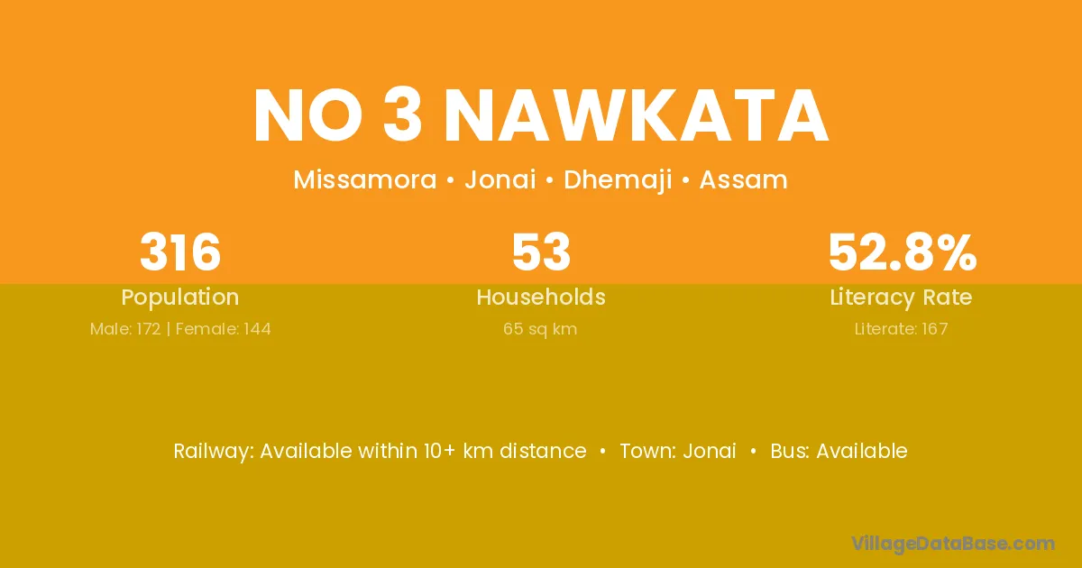 No 3 Nawkata village has a total population of 316 people, of which 172 are males and 144 are females.
