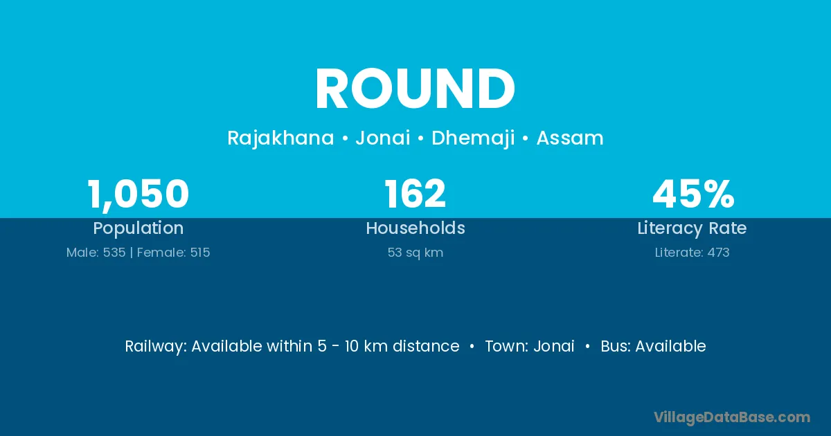 Round village has a total population of 1,050 people, of which 535 are males and 515 are females.