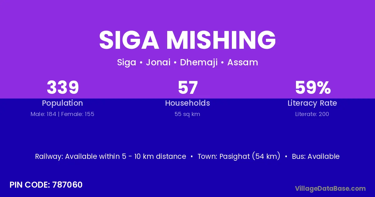 Siga Mishing village has a total population of 339 people, of which 184 are males and 155 are females.