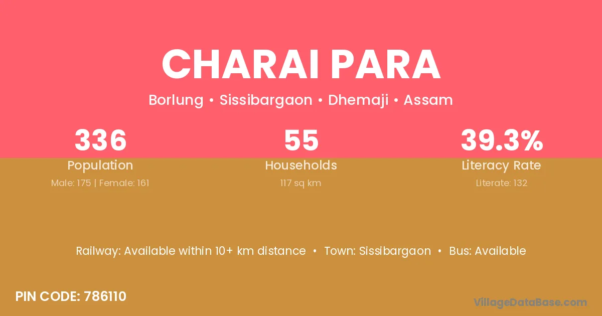 Charai Para village has a total population of 336 people, of which 175 are males and 161 are females.