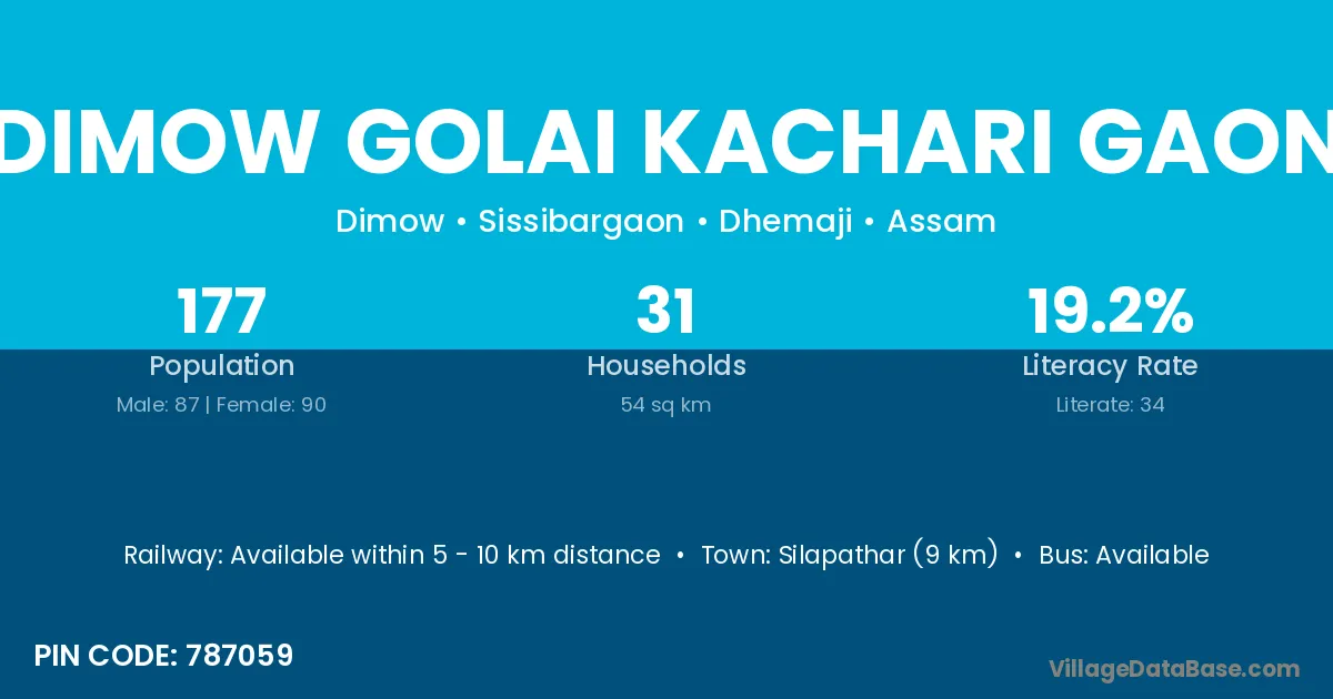 Dimow Golai Kachari Gaon village has a total population of 177 people, of which 87 are males and 90 are females.