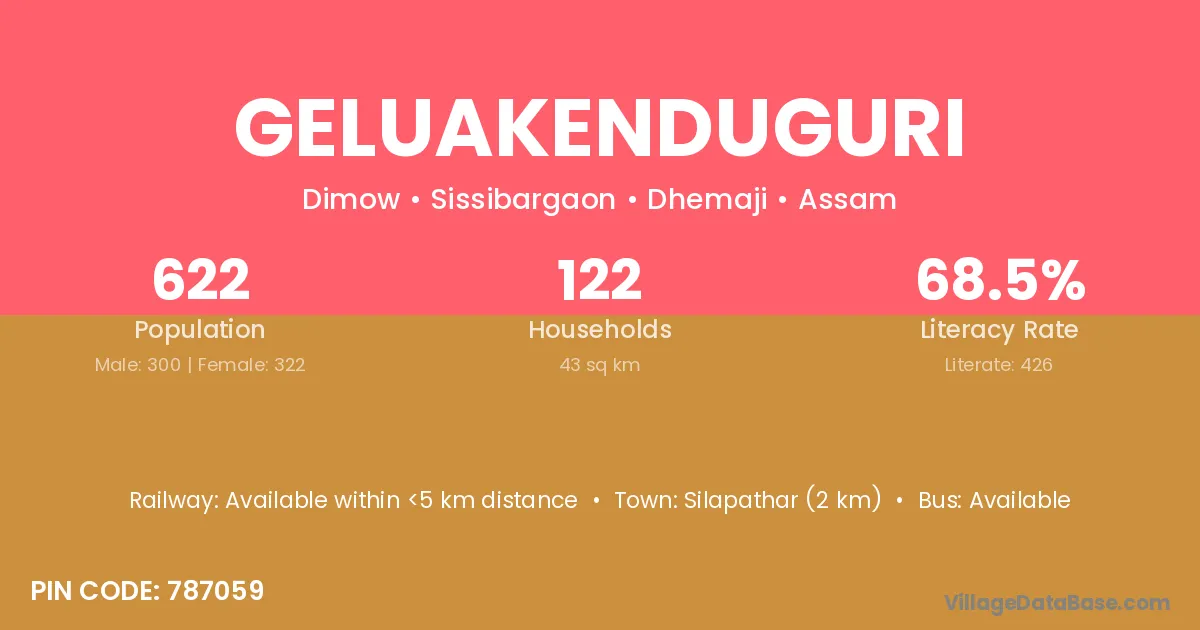 Silapathar (2 km) is the nearest town to Geluakenduguri village for major economic activities and is located approximately 2 km away.