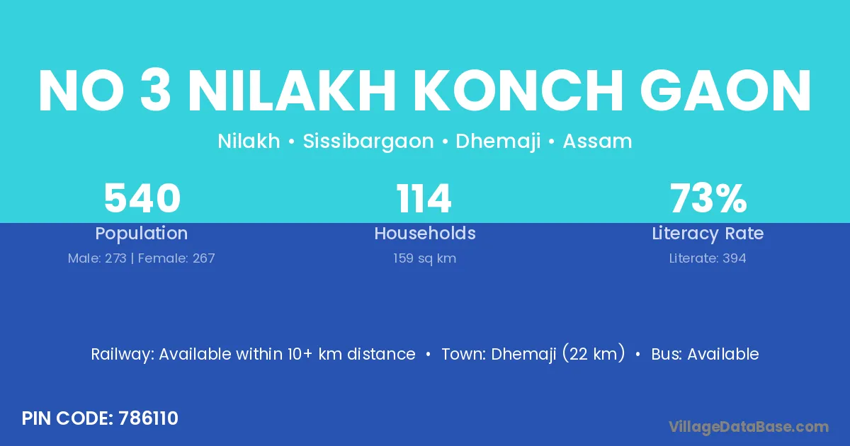 No 3 Nilakh Konch Gaon village has a total population of 540 people, of which 273 are males and 267 are females.