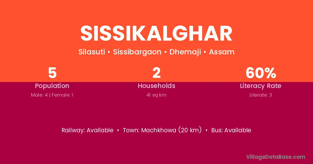 Sissikalghar village has a total population of 5 people, of which 4 are males and 1 are females.