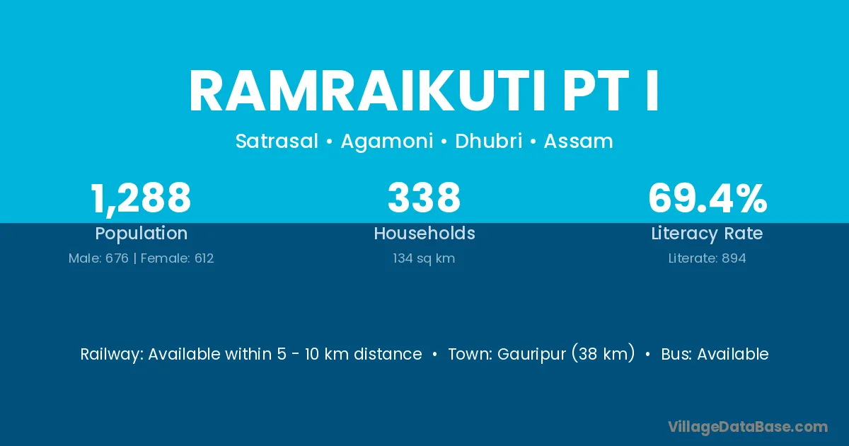Gauripur (38 km) is the nearest town to Ramraikuti Pt I village for major economic activities and is located approximately 38 km away.
