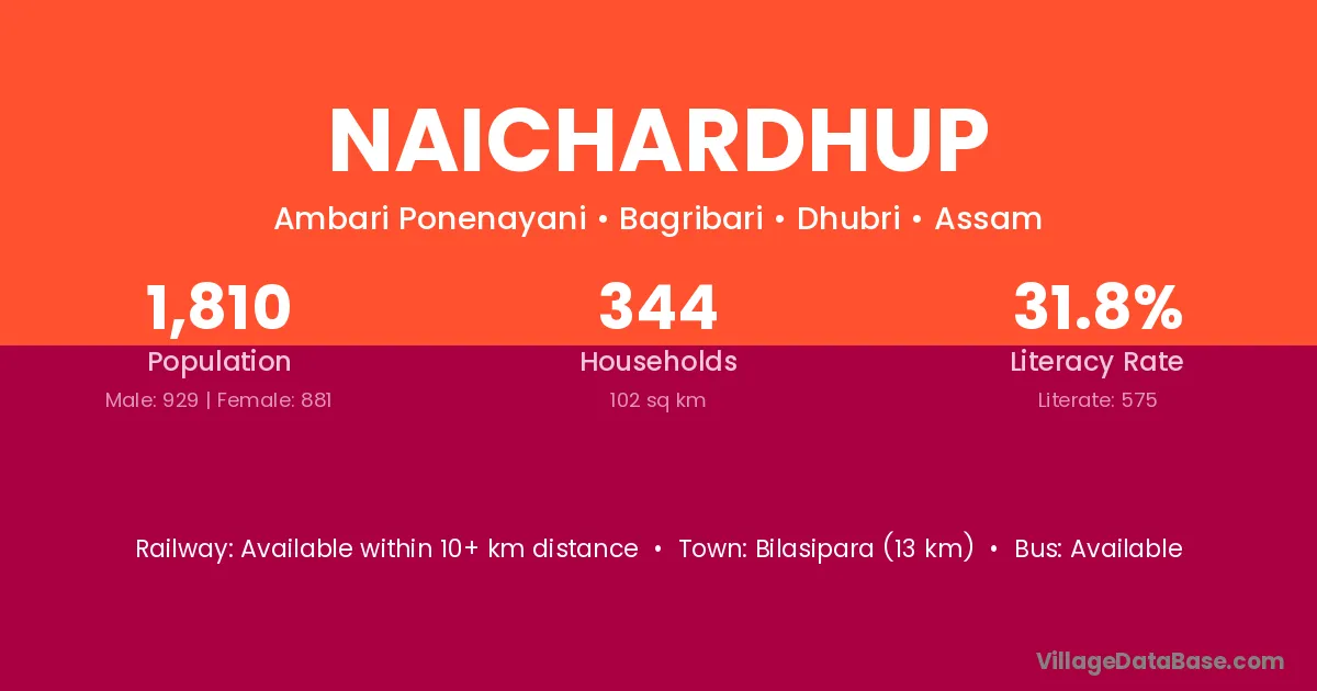 Bilasipara (13 km) is the nearest town to Naichardhup village for major economic activities and is located approximately 13 km away.