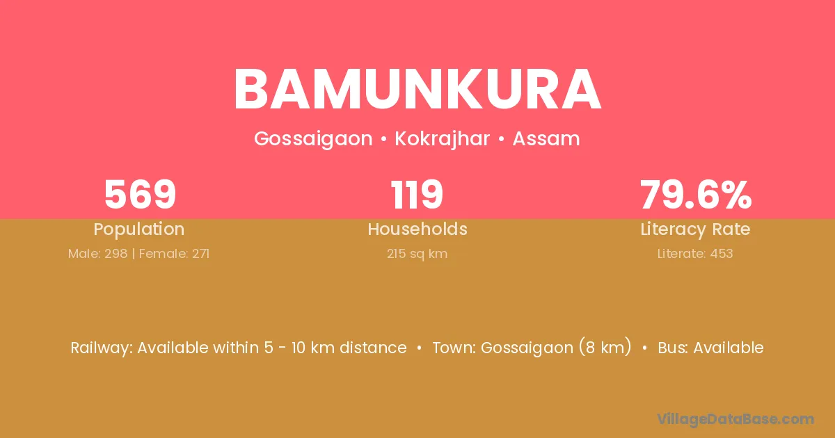Sapatgram (7 km) is the nearest town to Bamunkura village for major economic activities and is located approximately 7 km away.