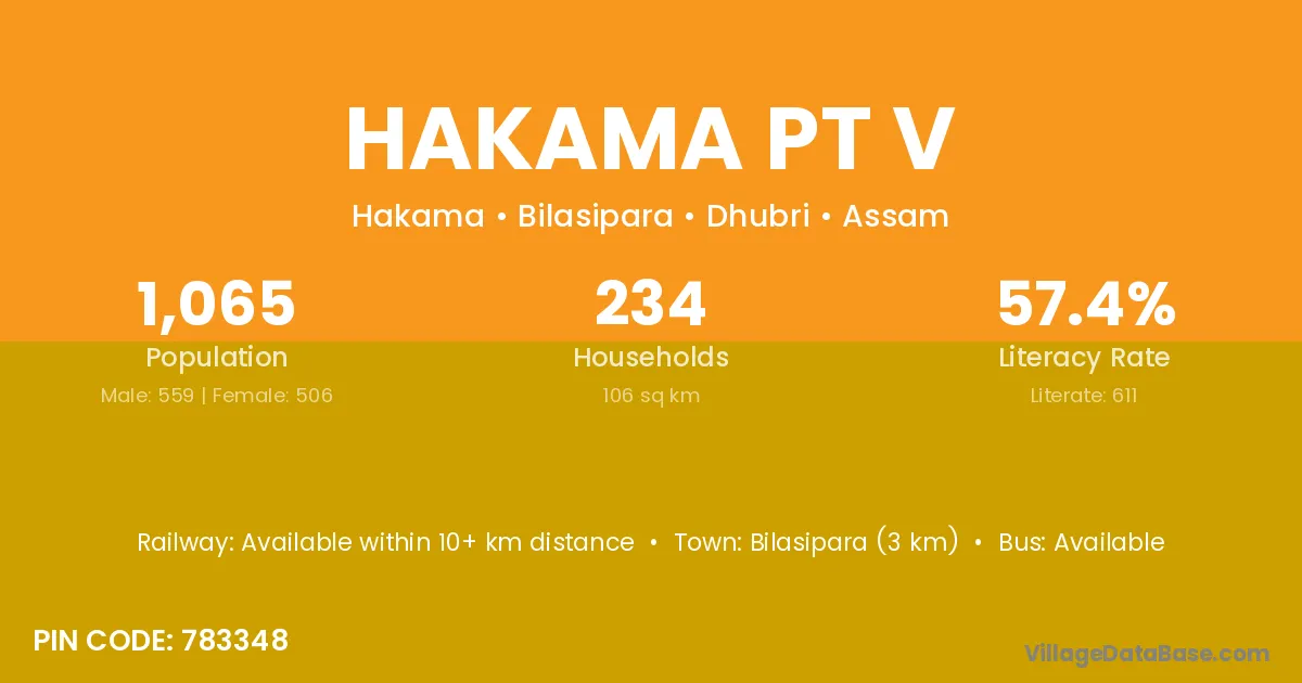 Bilasipara (3 km) is the nearest town to Hakama Pt V village for major economic activities and is located approximately 3 km away.