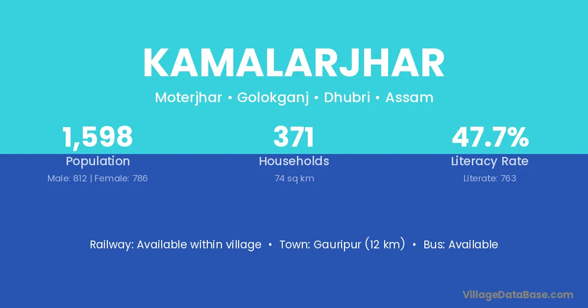 Gauripur (12 km) is the nearest town to Kamalarjhar village for major economic activities and is located approximately 12 km away.