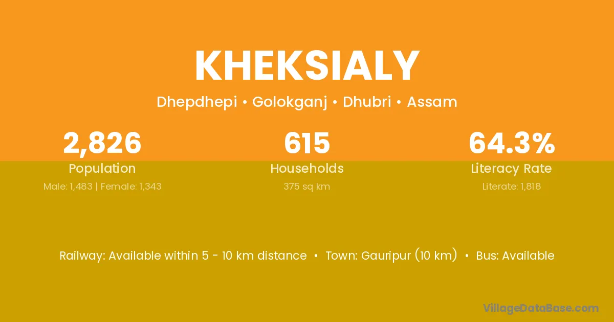 Gauripur (10 km) is the nearest town to Kheksialy village for major economic activities and is located approximately 10 km away.