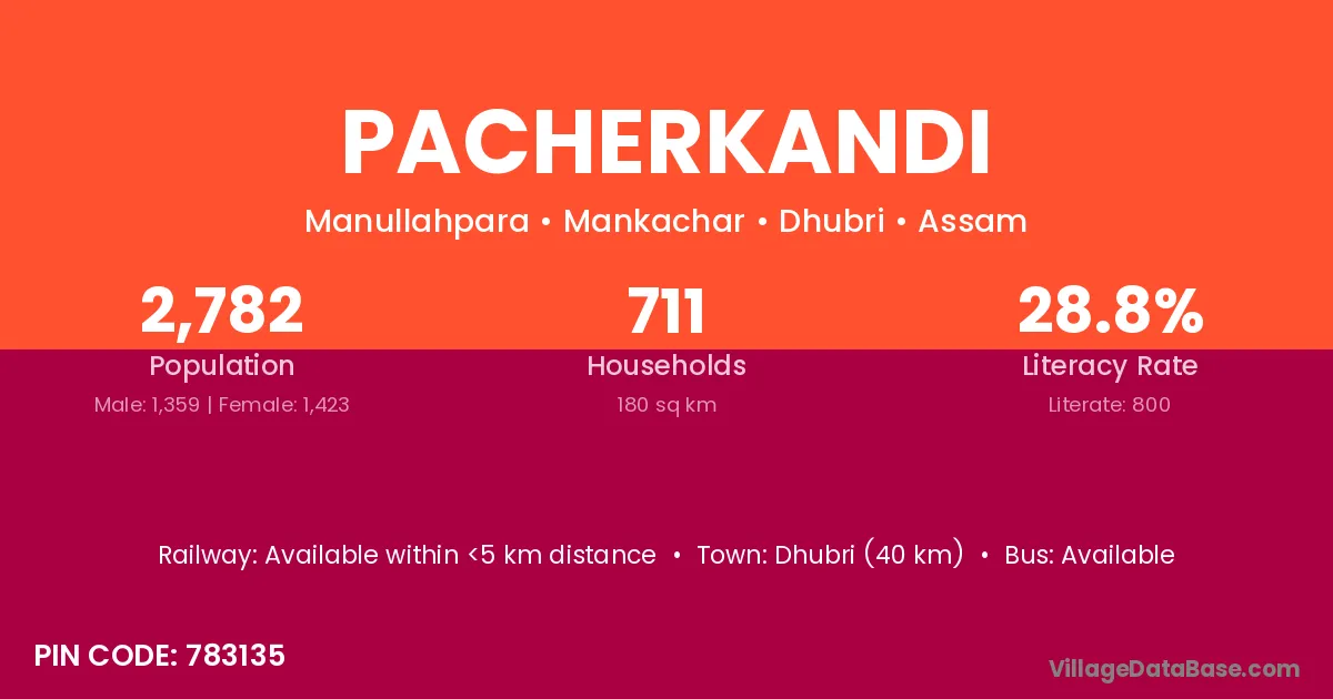 Dhubri (40 km) is the nearest town to Pacherkandi village for major economic activities and is located approximately 40 km away.