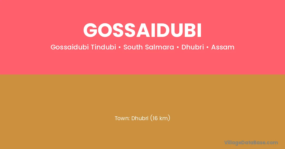 Dhubri (16 km) is the nearest town to Gossaidubi village for major economic activities and is located approximately 16 km away.