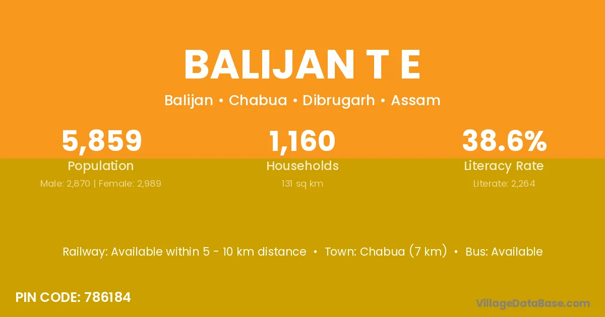 According to Census 2011 information, the village code of Balijan T E village is 786184.