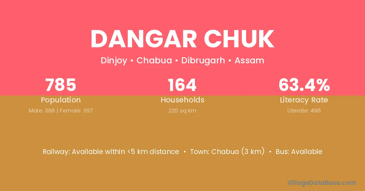 Chabua (3 km) is the nearest town to Dangar Chuk village for major economic activities and is located approximately 3 km away.