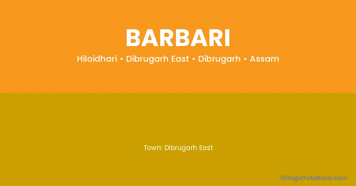 Dibrugarh East is the nearest town to Barbari village for major economic activities