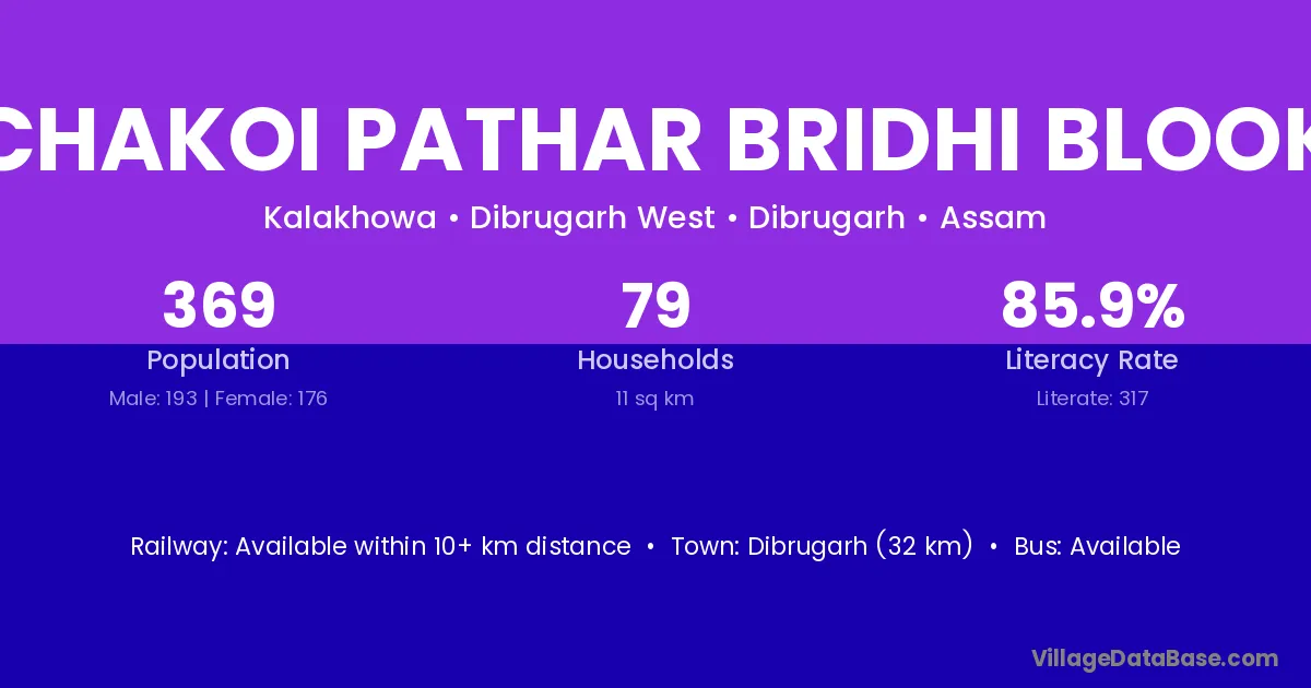 Chakoi Pathar Bridhi Blook village has a total population of 369 people, of which 193 are males and 176 are females.