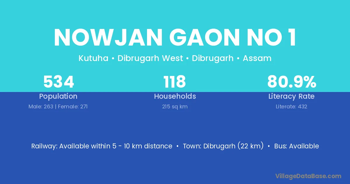 Nowjan Gaon No 1 village has a total population of 534 people, of which 263 are males and 271 are females.