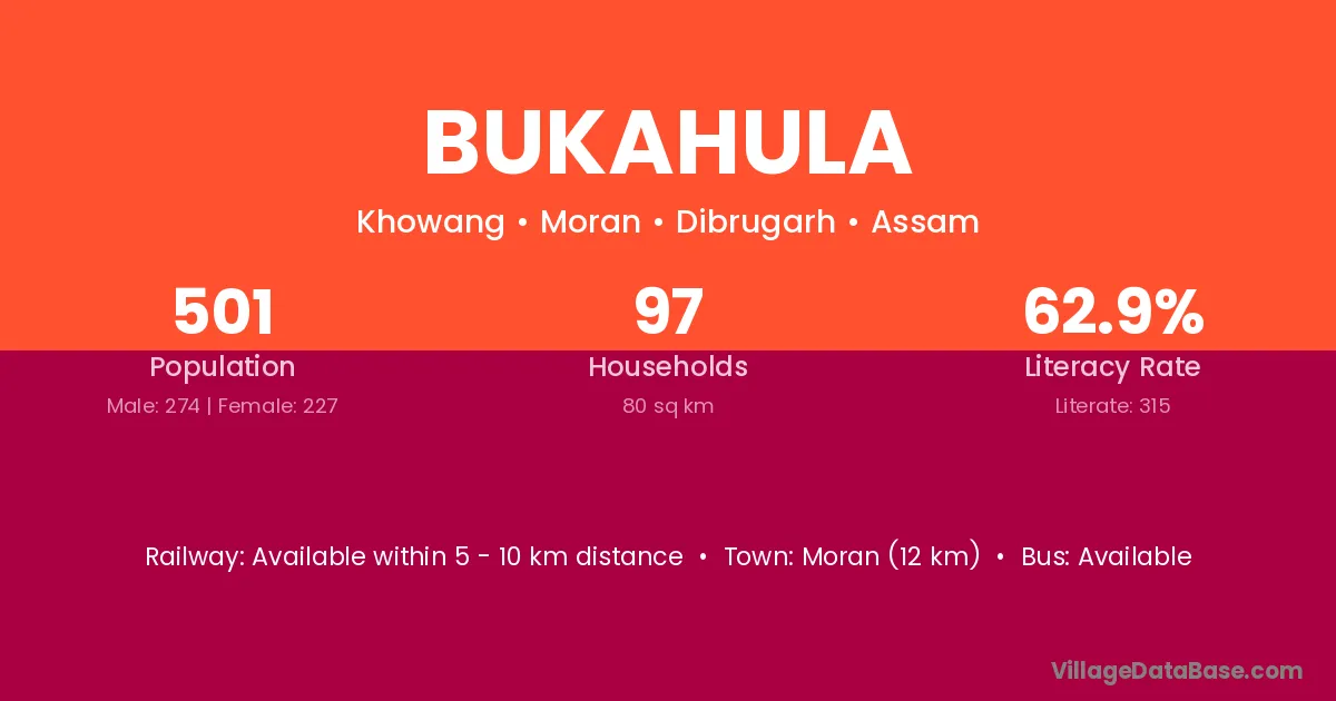 Bukahula village is located in the Moran Subdivision of the Dibrugarh district in Assam .