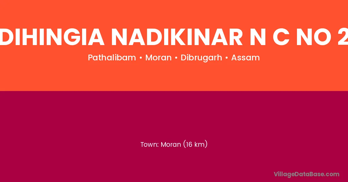 Dihingia Nadikinar N C No 2 village is located in the Moran Subdivision of the Dibrugarh district in Assam .