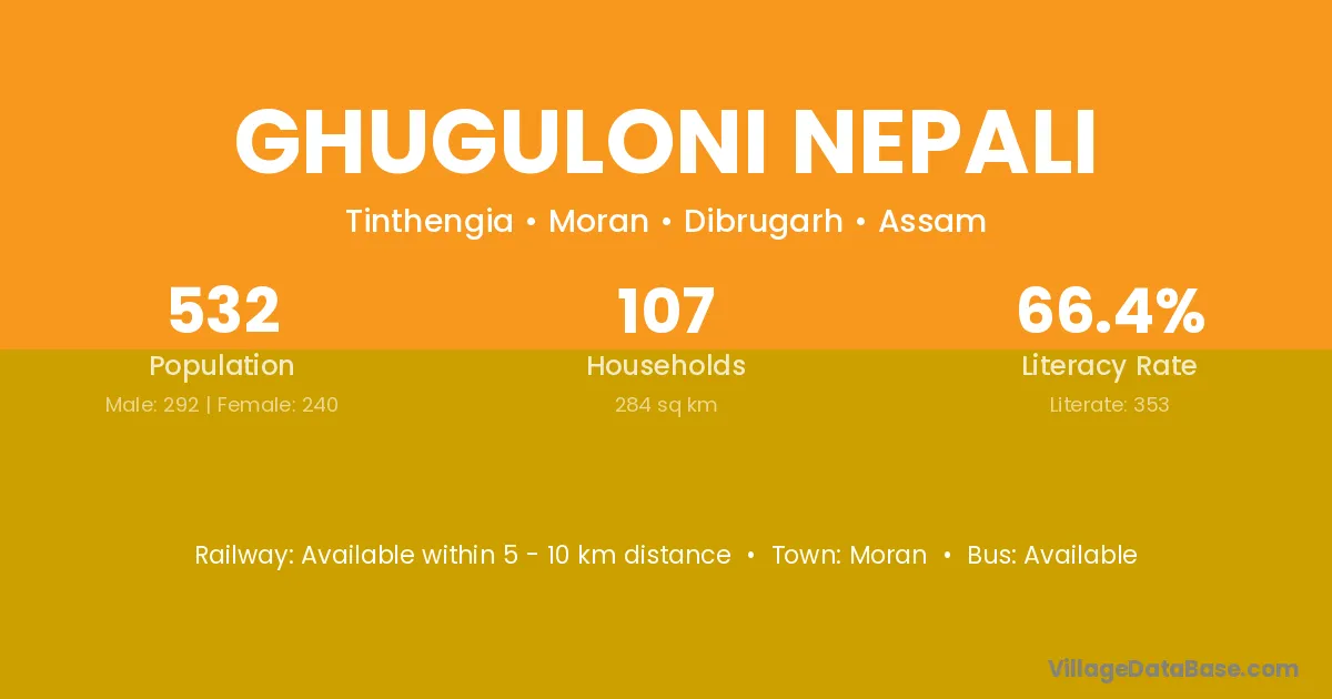 Ghuguloni Nepali village has a total population of 532 people, of which 292 are males and 240 are females.