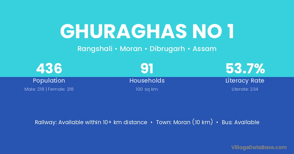Ghuraghas No 1 village has a total population of 436 people, of which 218 are males and 218 are females.