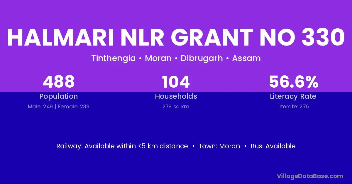 Halmari Nlr Grant No 330 village has a total population of 488 people, of which 249 are males and 239 are females.