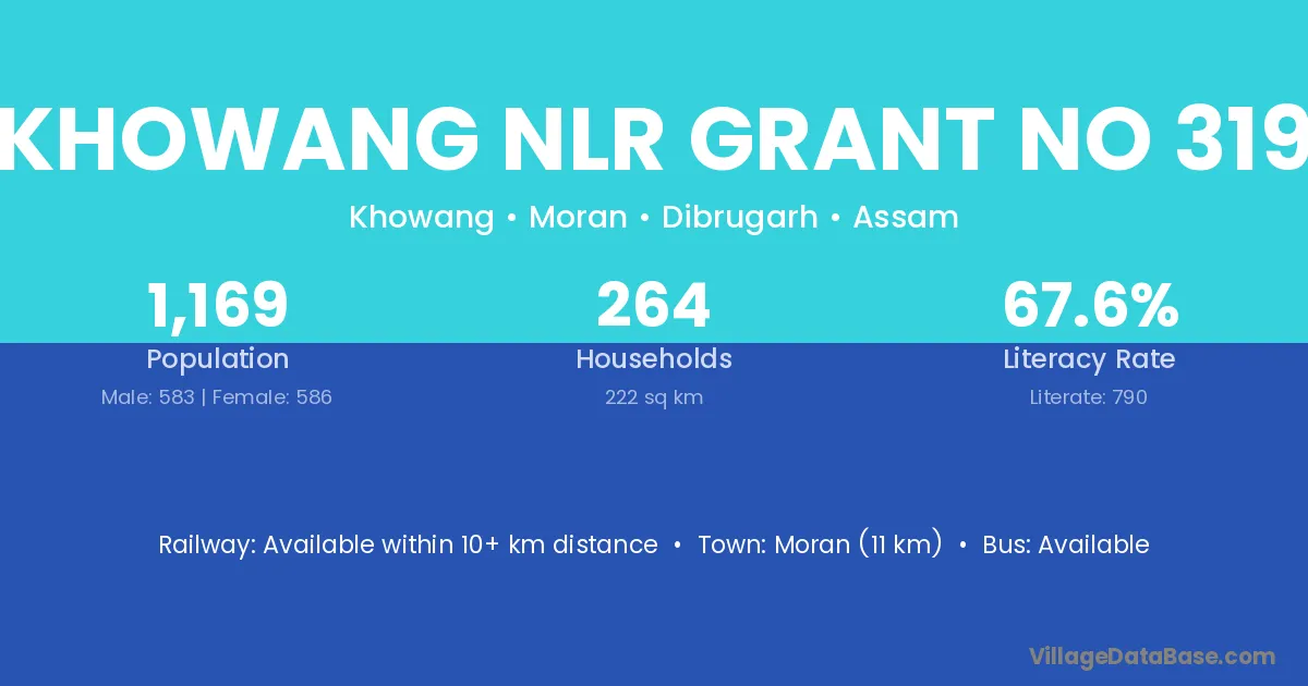Khowang Nlr Grant No 319 village has a total population of 1,169 people, of which 583 are males and 586 are females.