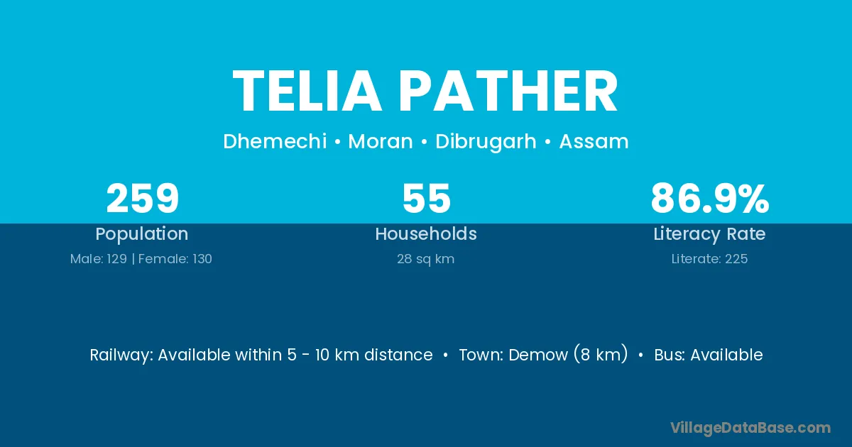 Demow (8 km) is the nearest town to Telia Pather village for major economic activities and is located approximately 8 km away.