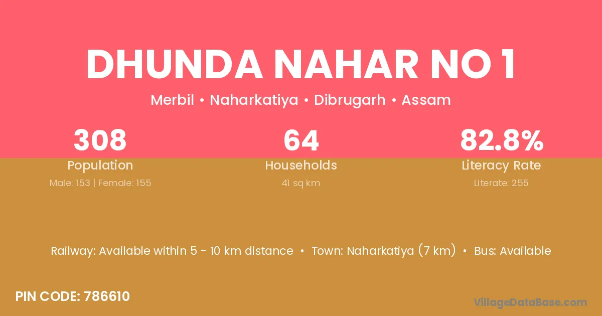 Dhunda Nahar No 1 village has a total population of 308 people, of which 153 are males and 155 are females.