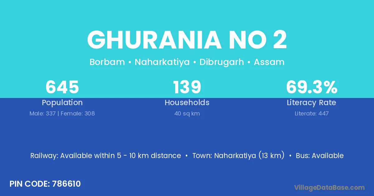 Ghurania No 2 village has a total population of 645 people, of which 337 are males and 308 are females.