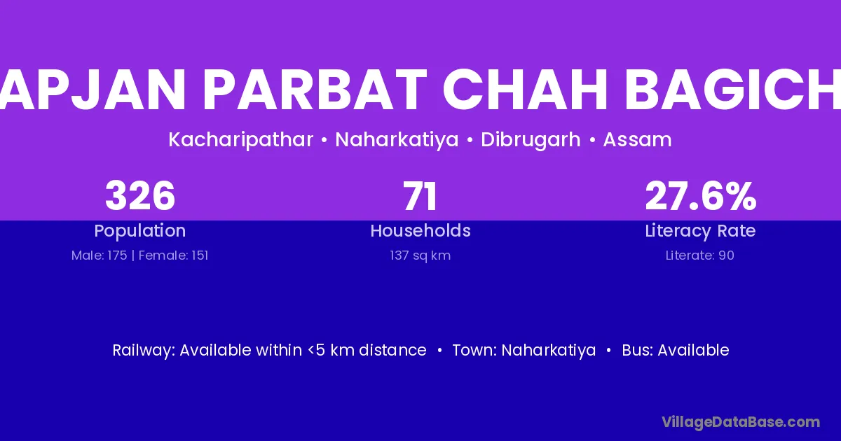 Hapjan Parbat Chah Bagicha village is located in the Naharkatiya Subdivision of the Dibrugarh district in Assam .
