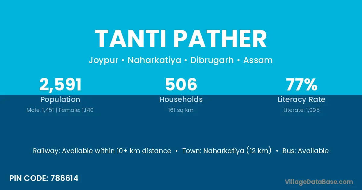 Naharkatiya (12 km) is the nearest town to Tanti Pather village for major economic activities and is located approximately 12 km away.
