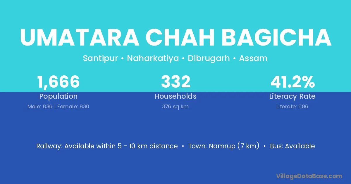 Namrup (7 km) is the nearest town to Umatara Chah Bagicha village for major economic activities and is located approximately 7 km away.