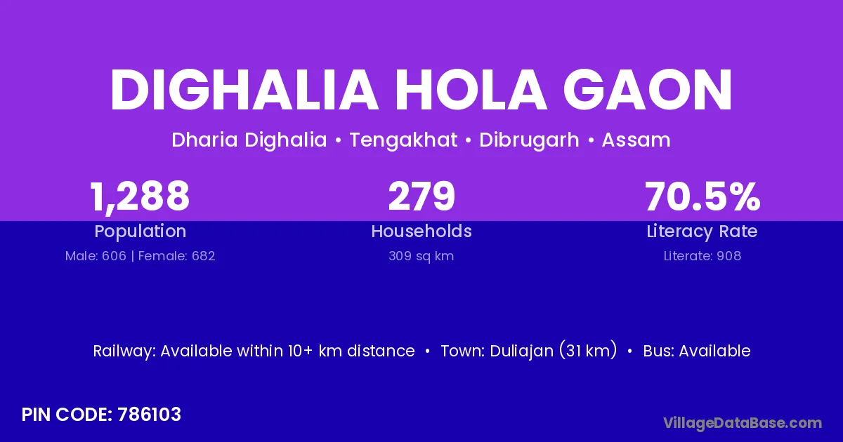 According to Census 2011 information, the village code of Dighalia Hola Gaon village is 786103.