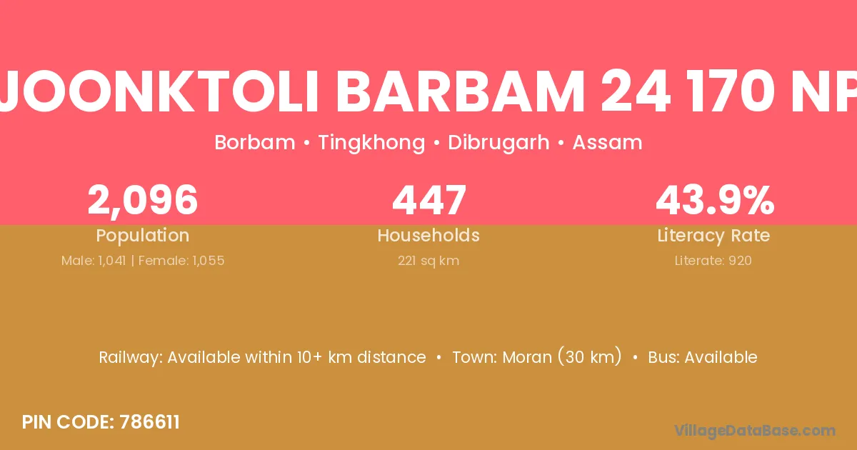 Joonktoli Barbam 24 170 Np village is located in the Tingkhong Subdivision of the Dibrugarh district in Assam .