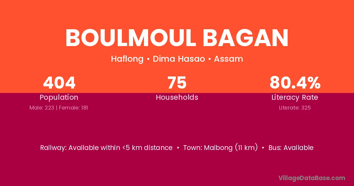Boulmoul Bagan village has a total population of 404 people, of which 223 are males and 181 are females.