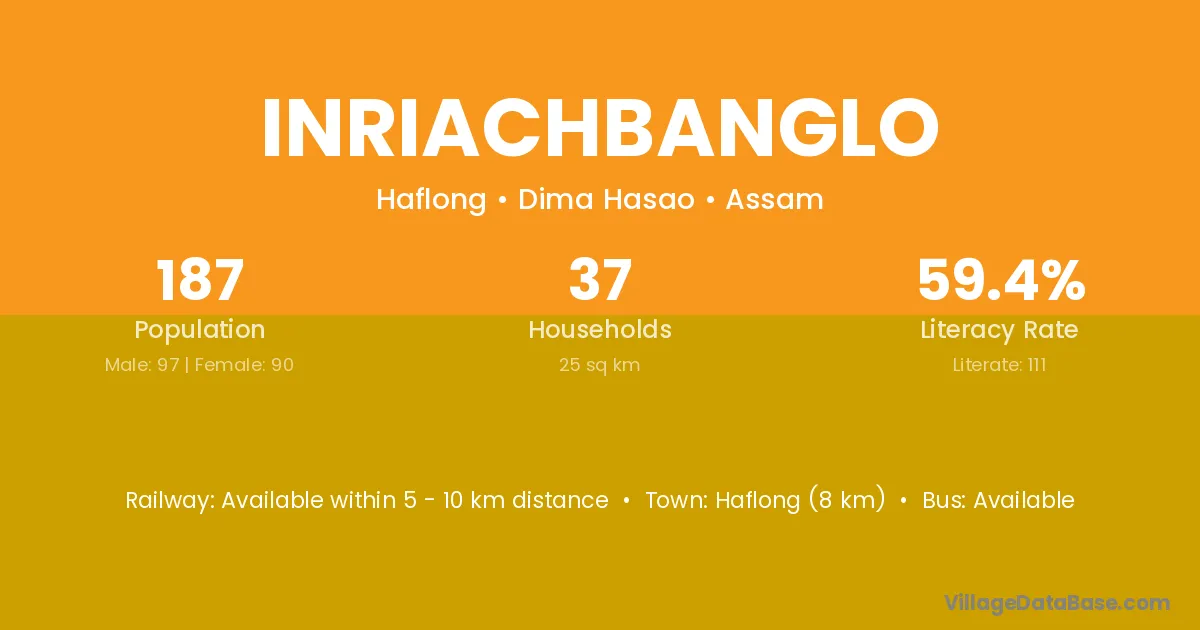 Haflong (8 km) is the nearest town to Inriachbanglo village for major economic activities and is located approximately 8 km away.