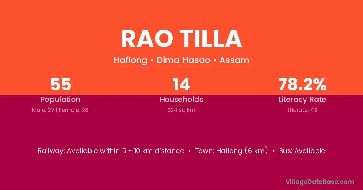 Haflong (6 km) is the nearest town to Rao Tilla village for major economic activities and is located approximately 6 km away.