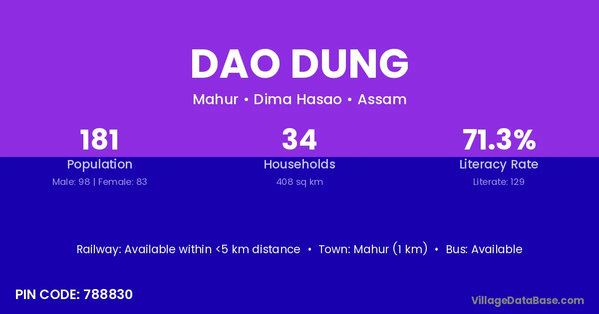 Dao Dung village is located in the Mahur Subdivision of the Dima Hasao district in Assam .