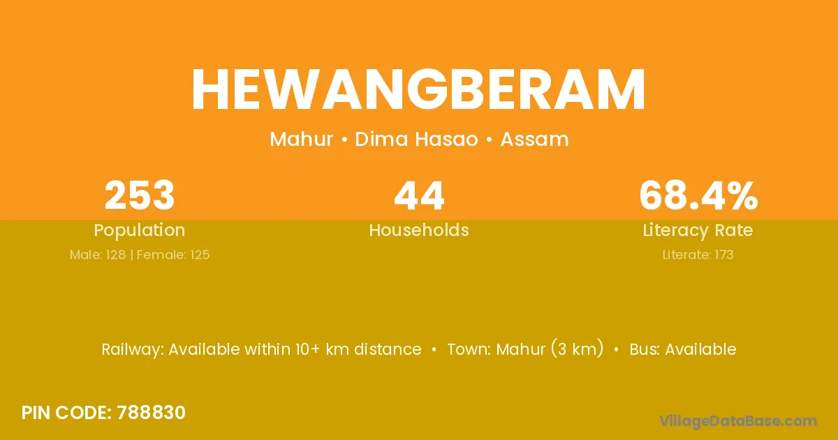 Hewangberam village has a total population of 253 people, of which 128 are males and 125 are females.