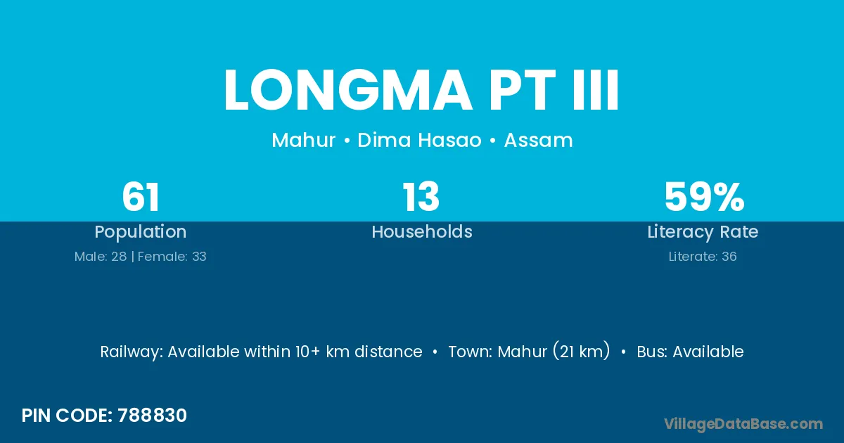 Longma Pt Iii village has a total population of 61 people, of which 28 are males and 33 are females.