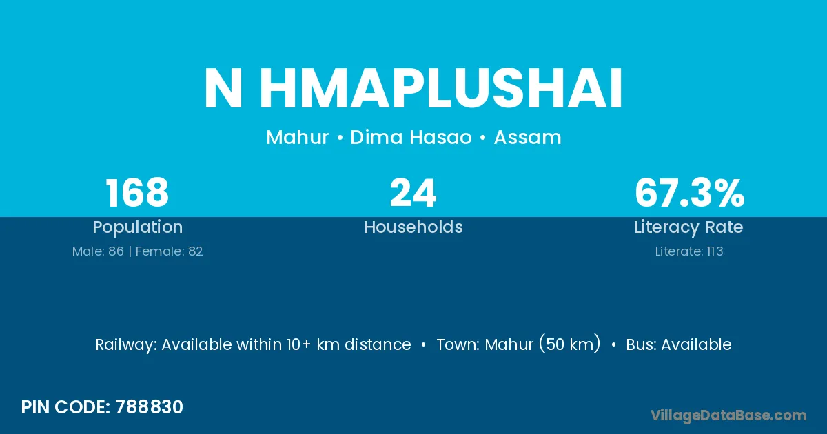 Mahur (50 km) is the nearest town to N Hmaplushai village for major economic activities and is located approximately 50 km away.