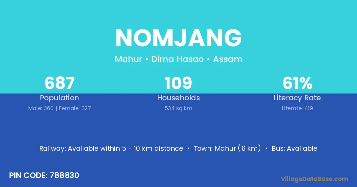 Mahur (6 km) is the nearest town to Nomjang village for major economic activities and is located approximately 6 km away.
