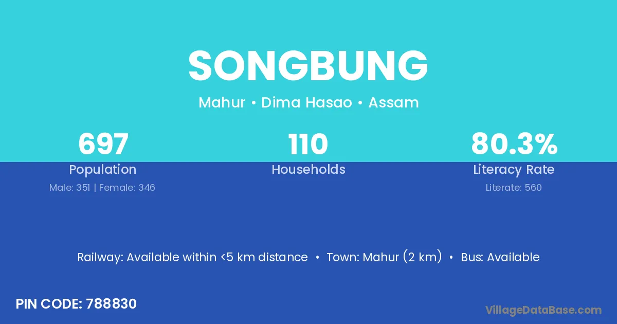 Songbung village is located in the Mahur Subdivision of the Dima Hasao district in Assam .