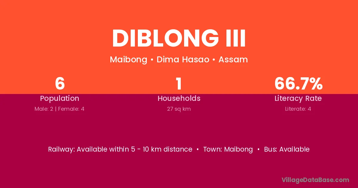 Diblong Iii village has a total population of 6 people, of which 2 are males and 4 are females.