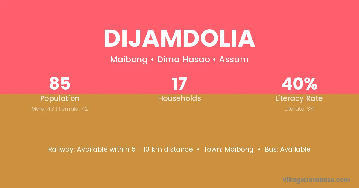 Maibong is the nearest town to Dijamdolia village for major economic activities